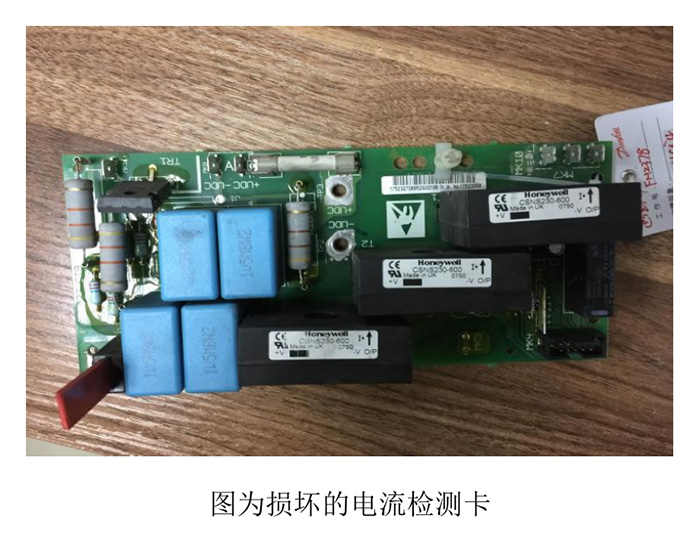 案例一:客戶反映有一臺 VLT6000 75KW 的變頻器出現(xiàn)報警并跳閘,報警不能復位,變頻器不能運行。我們到現(xiàn)場首先檢查主電路是否正常,確認正常無誤后再上電,然后查看變頻器報警記錄,發(fā)現(xiàn)有AL14報警,屬于接地故障報警。出現(xiàn)接地故障報警一般有兩個可能,要不就是電機或者變頻器真的出現(xiàn)接地系統(tǒng)故障,要不就是變頻器電流檢測電路故障導致的。于是我們首先排查外部原因,查看變頻器和電機的接地線是否連接正常,用搖表給電機和變頻器打絕緣查看是否達到絕緣要求,查看電機電纜線是否過長等等。經(jīng)仔細檢查,沒發(fā)現(xiàn)外部電路出現(xiàn)異常,那就基本可以確定是本身變頻器的電流檢測電路出現(xiàn)故障了。我們把變頻器的電流檢測卡更換后,AL14報警復位消除,變頻器恢復正常運行。