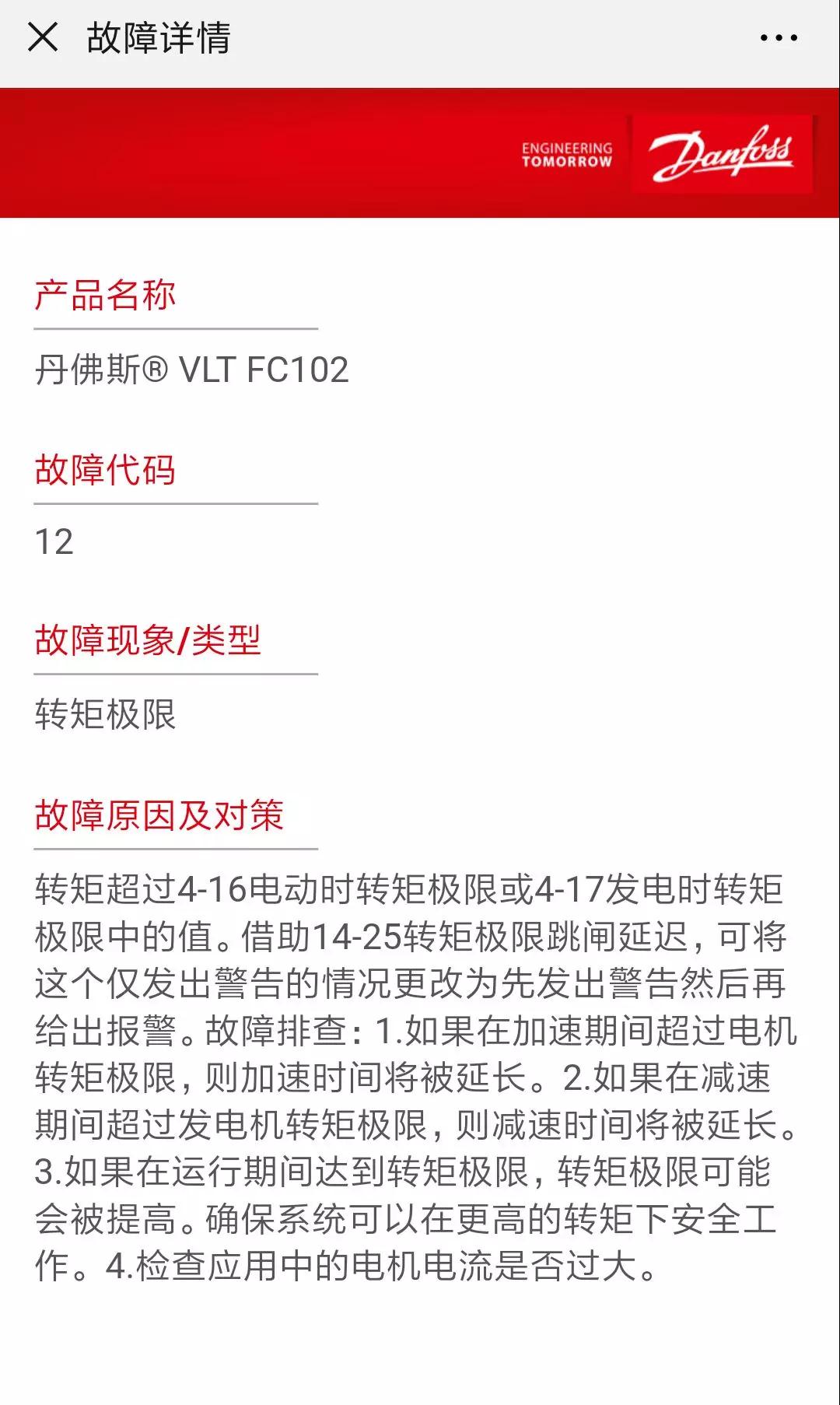 以上就是丹佛斯傳動(dòng)全新的故障速查系統(tǒng),我們希望,通過新版的故障速查系統(tǒng),能更好得與客戶拉近距離,為大家提供有效、優(yōu)質(zhì)的服務(wù)。