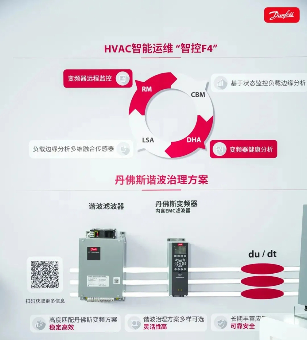 丹佛斯擁有多種諧波抑制的解決方案,有效降低諧波含量,提高了系統(tǒng)效率,實現(xiàn)長期穩(wěn)定運行。丹佛斯經(jīng)認證的控制諧波的解決方案包含有源濾波器、高級無源濾波器、低諧波變頻器、多脈沖變頻器及有源前端變頻器。此外,丹佛斯以“丹管家”智能運維解決方案為核心,為綠色廠務提供從監(jiān)測到優(yōu)化的全鏈路支持,包含變頻器遠程監(jiān)控(RM)、基于狀態(tài)監(jiān)控負載邊緣分析(CBM)、變頻器健康分析(DHA)及負載邊緣分析多維融合傳感器(LSA),可有效降低老舊廠房綠色改造升級的成本,經(jīng)濟價值凸顯。