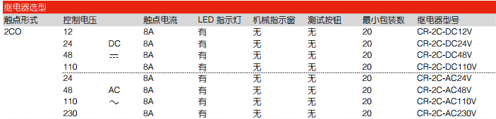 ● 超小體積,大限度節省安裝空間● 超大電流,2CO觸點高達8A● 所有CR繼電器標配LED指示燈(PCB板型)● 先進的制造工藝,所有保護功能高度集成● 配有多種插座和附件可供選擇
