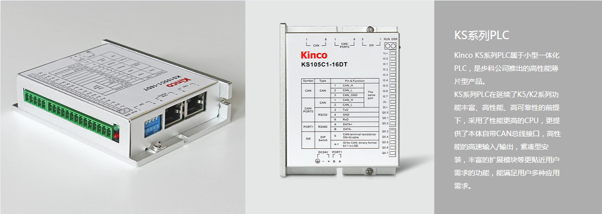 KS105C1和KS105C2本體自帶CAN接口,支持CANopen主站、從站和CAN自由協(xié)議,配合便利運(yùn)動(dòng)控制指令庫(kù),為多軸應(yīng)用場(chǎng)合提供更高性價(jià)比的選擇