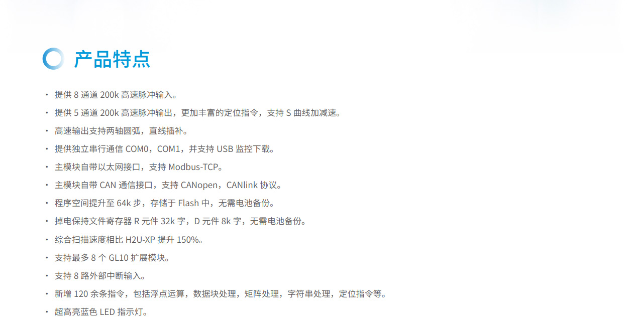 H3U系列PLC是匯川技術(shù)開發(fā)的第三代高性能小型PLC,采用新一代獨(dú)具匠心的PLC 架構(gòu)技術(shù),在增加更多豐富功能的情況下持續(xù)提升性能。配合完整且嚴(yán)格的軟件測(cè)試過程,使得PLC 穩(wěn)定可靠,值得信賴。